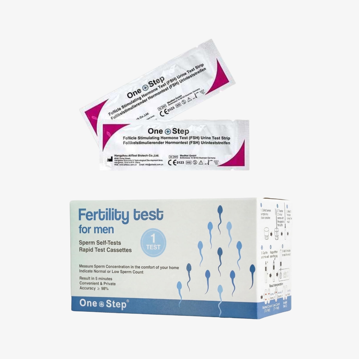 - OneStep plodnosti je zasnovan tako, da omogoča indikacijo semenčic v spermi