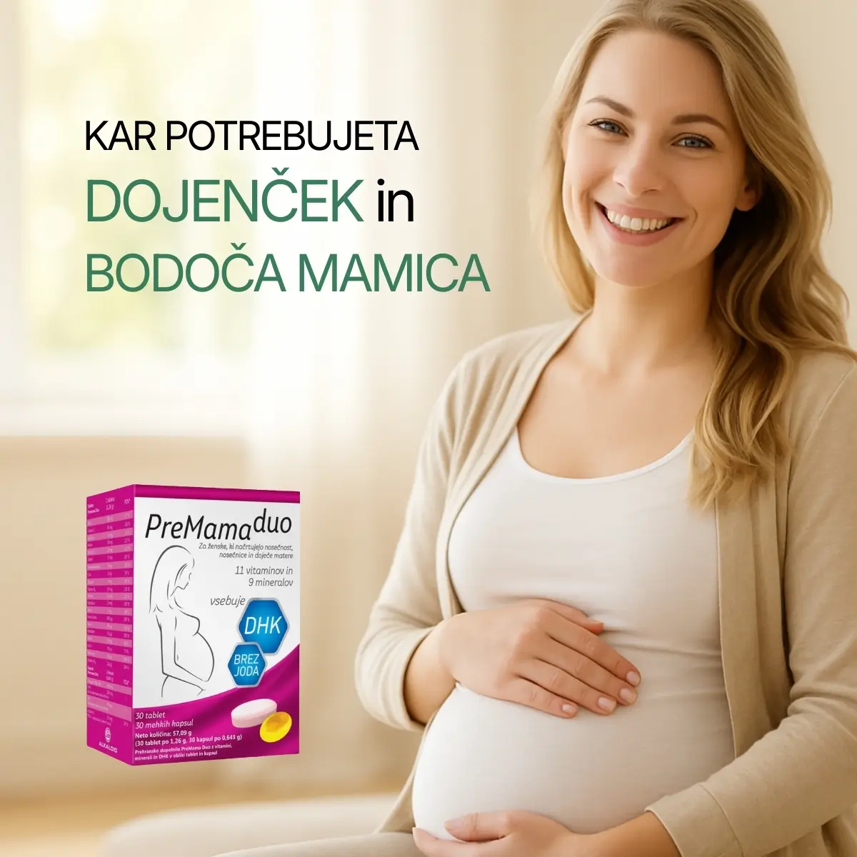 Dokozaheksaenojska kislina (DHK) prispeva k normalnemu razvoju možganov in vida ploda ter dojenega otroka.*